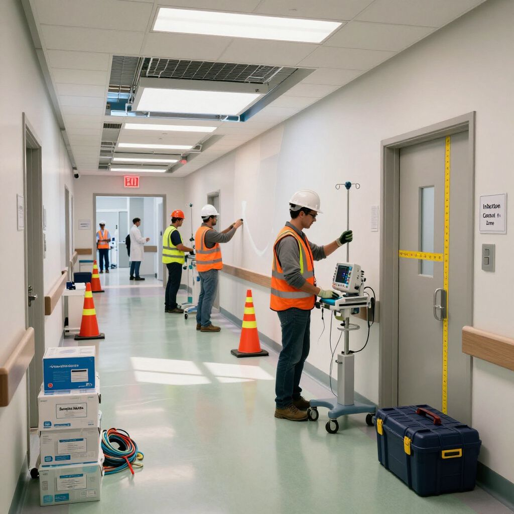 Reformas hospitalares que respeitam normas técnicas rigorosas, assegurando ambientes seguros e adequados para saúde.